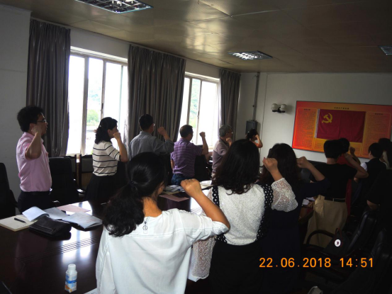 本网讯(马克思主义学院葛楠/文 张建军/图),为进一步增强廉洁自律意识,筑牢拒腐防变思想防线,6月22日,马克思主义学院教工党支部以典型案例内容和专题警示教育作为警示教育学习内容组织集中学习,开展了“守底线、保清廉、担责明纪看行动”主题党日活动。主题活动之前,还组织全体党员开展了“重温入党誓词”活动。