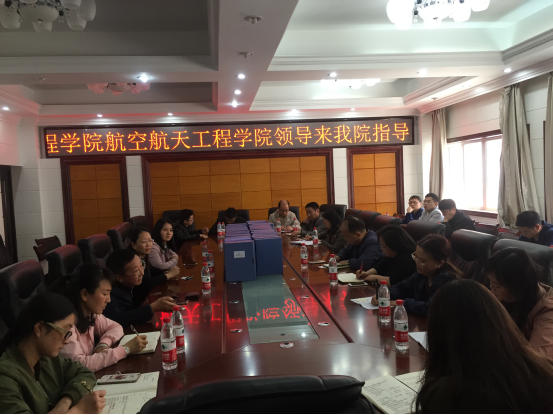 本网讯(航空航天工程学院于茂竹)4月10日下午,航空航天工程学院、材料与冶金工程学院、理学院党政领导带领学院评建工作小组一行19人赴贵州师范学院数学与计算机科学学院(以下简称数计学院)开展本科教学工作合格评估调研学习。贵州师范学院数学与计算机科学学院党委书记肖湘萍、院长左羽、党委副书记李艳琴及相关工作负责人给予热情接待。