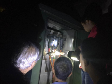 在电力抢修的第一线,后勤管理处的两位负责人与水电科人员同在现场,水电师傅们以19日排查出的七号学生公寓故障点为突破口,沿着学校2200米的地下主线缆分为上下段分组进行一点点排查,20日凌晨2:07分排查出第二个故障点,凌晨3:00第三个故障点被发现,凌晨4:50最后一个线路故障点被发现。针对各处故障情况,后勤管理处迅速拟定了维修计划,电力抢修人员分组同时开展维修工作。与此同时后勤管理处膳食科的老师们连夜联系发电车,对接学校各食堂为20日餐饮工作做好保障,部门其他科室的老师们也在忙碌着,为在抢修第一线的人员们提供各项后勤保障。