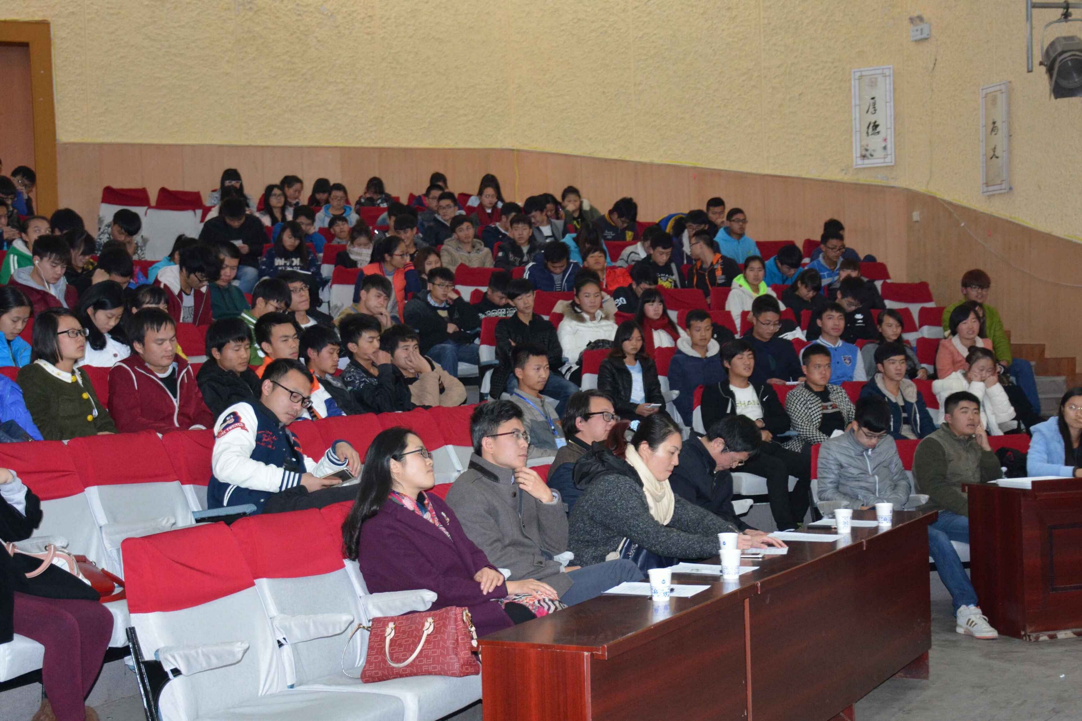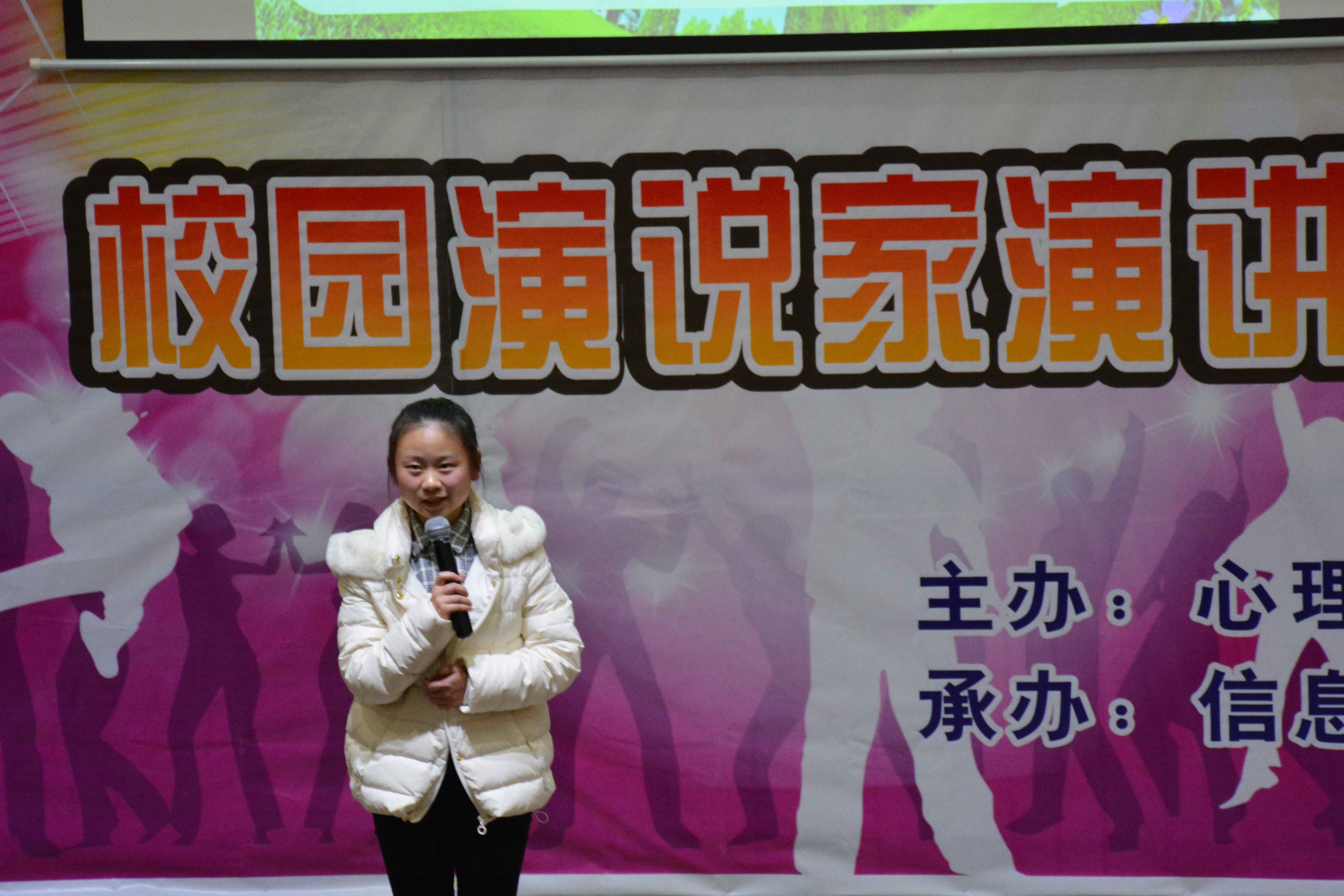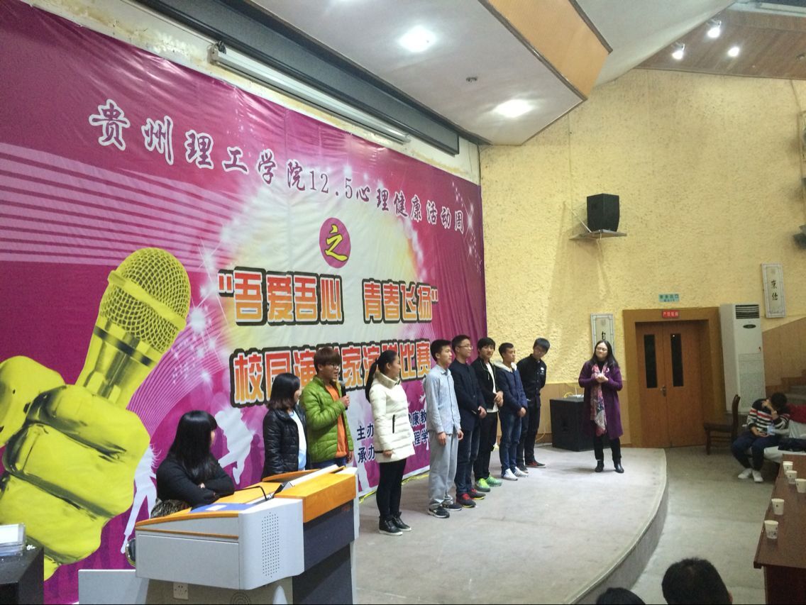本网讯 (轻工工程学院 喻泽侠)12月6日晚,由心理健康教育与咨询中心主办,轻工工程学院及信息工程学院联合承办的以“吾爱吾心-青春飞扬”为主题的校园演说家演讲比赛在逸夫小报告厅举行。学工部副部长顾亚丽,信息工程学院党总支书记蒋学勤、副院长胡文生,轻工工程学院党总支副书记华岚、副院长黄名正出席并担任评委。