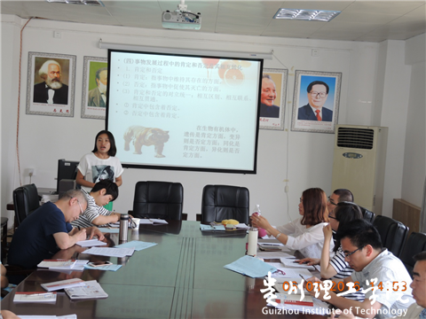 为充分发挥教研室在教学组织、管理、师资培养和教学改革中的作用,提高课堂教学质量,促进教师成长,结合学校的教风学风建设,马列部决定于5月启动开展“教研活动交流月”活动。“交流月”的第一次活动为田莉老师代表马原教研室主讲《事物发展过程中的肯定和否定及其相互转化》。田莉老师从阐述定义、讨论发现的问题、进一步阐述二者关系三个环节来进行此次观摩课。