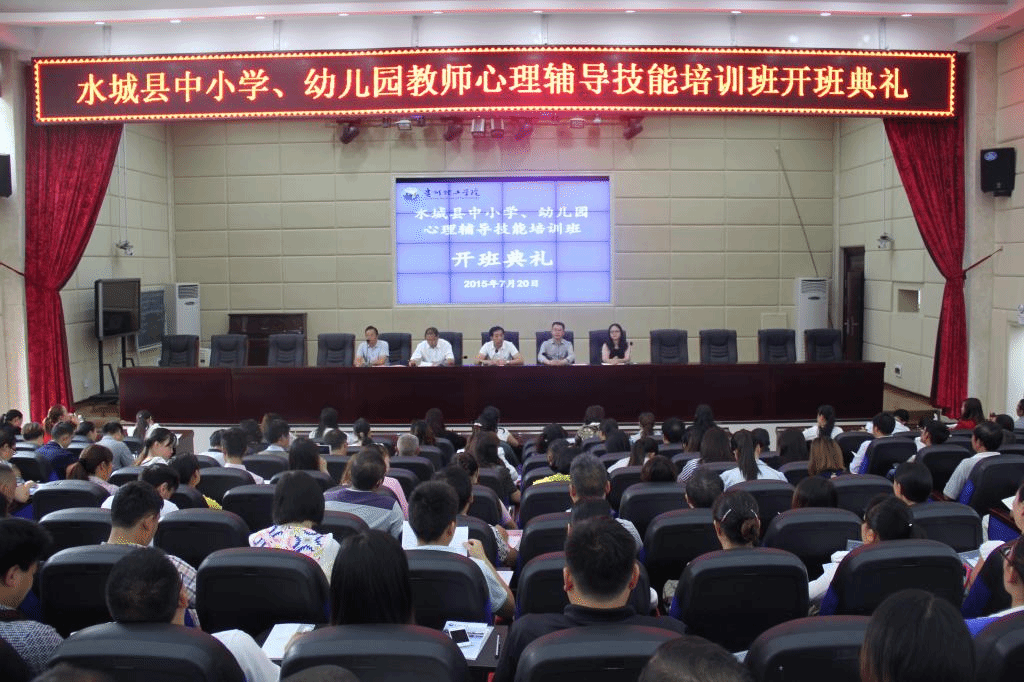 本网讯(继续教育学院 刘振男) 7月20日上午8:30,水城县中小学、幼儿园教师心理辅导技能培训班开班典礼在水城县第八中学艺术中心举行。贵州理工学院继续教育学院院长李辅敏、党总支副书记刘路宁、水城县教育局副局长李德福以及相关领导出席了开班典礼,本次共有340名学员参加培训。