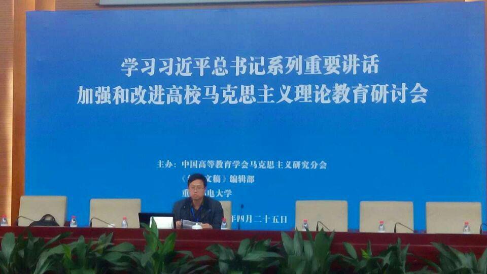 本网讯(马列主义教学部 蓝文思)4月24日至26日,由中国高等教育学会马克思主义研究分会、《红旗文稿》编辑部、重庆邮电大学联合主办的“学习习近平总书记系列重要讲话,加强和改进高校马克思主义理论教育研讨会”在重庆邮电大学举行。