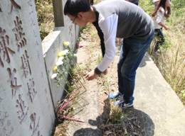 通过祭奠地质先烈扫墓活动,同学们深刻认识到要珍惜这来之不易的幸福生活,以地质先烈们作为自己的榜样,勤奋刻苦,做一个积极向上的学生,为祖国为人民贡献自己的力量。