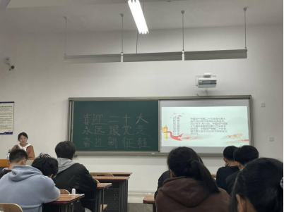 管科213班团支部李青青同学组织同学们进行“迎接二十大”的知识问答赛,并通过海报绘制、书写祝福语等形式表达对二十大的期待,支部同学参与度高,活动现场气氛活跃,整体效果好。