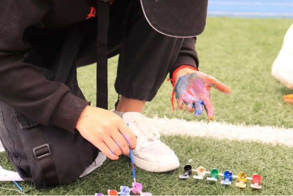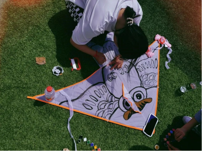 活动开始后,参加风筝节的同学陆续前往活动现场领取风筝等活动用品,开始创作属于自己的风筝,在风筝上画下自己的想法和创意图案。蓝天白云之下,洋溢着青春的气息,同学们的笑容伴随着飞舞的风筝一同翱翔天际。