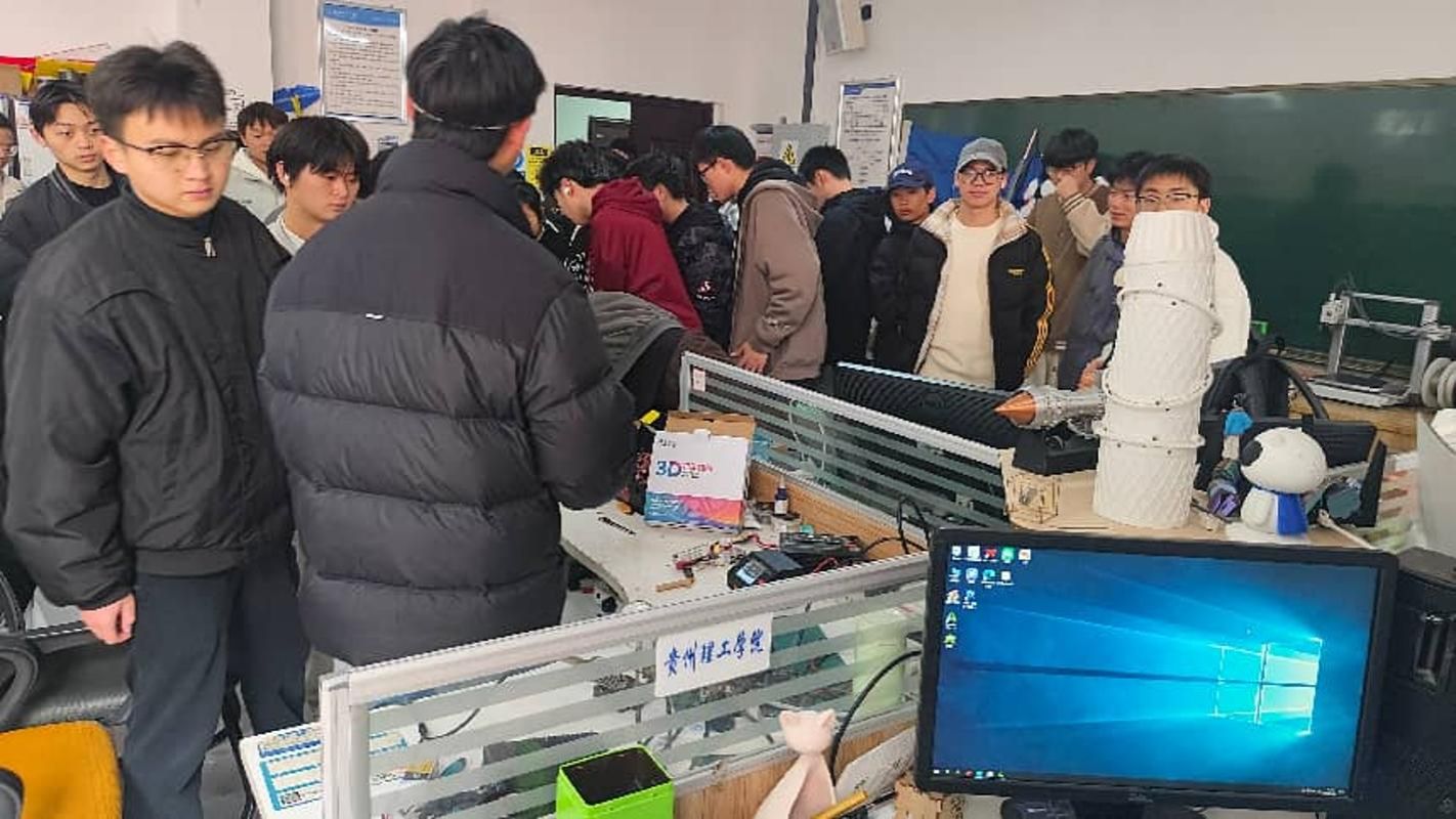 活动伊始,在航模队讲解员的细致引导下,同学们有序参观实验室展陈的历年学科竞赛荣誉奖状、专业加工操作台及多款自主设计制作的航模作品。讲解员围绕3D打印机、激光切割机等核心加工设备,详细讲解其工作原理、操作规范与航模制作中的实际应用,清晰展现航模从创意设计、零部件加工到成品组装的全流程,让同学们对航模工程实践有了直观且具象的认知。