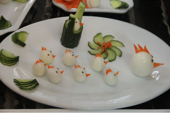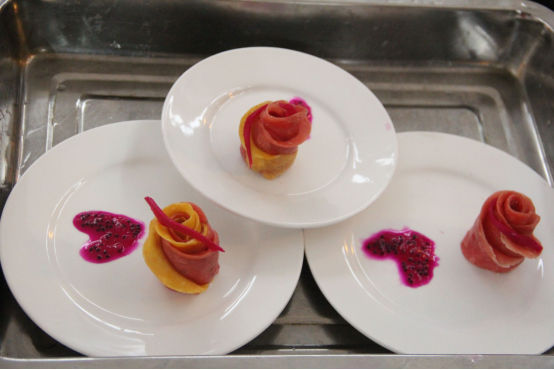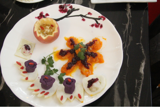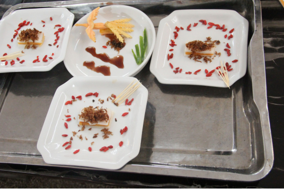 参赛选手经过前期认真查阅中医古方资料,精心准备养生食材,在色、香、味、美和功能疗效上巧妙搭配,苦瓜加红枣的“苦尽甘来”,鲜美鱼肉做的“红烧狮子头”,紫薯和面粉搭配的“紫薯于你”,鹌鹑蛋做的“小鸡总动员”等精美药膳美食给评委老师和现场观众惊喜不断。本次比赛共评出一等奖1名,二等奖2名,三等奖3名和优秀奖9名。