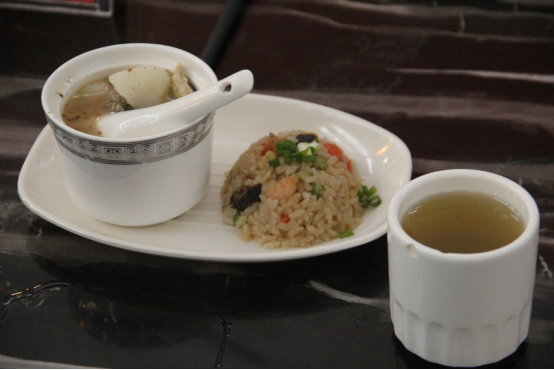 (乌鸡山药汤,荷叶饭,桂花蜜)