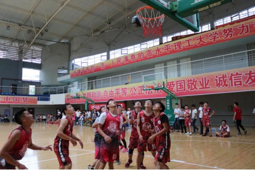 本网讯(撰稿人 宋荣庭 图片 李辉 张溪桓) 为喜迎十九大,迎接2017届新生进校,材料与冶金工程学院于2017年10月10日举办了首届“迎新杯”篮球联赛。开幕式于当日下午16时30分在贵州理工学院校体育馆举行,院领导潘健林、辅导员杨江出席开幕式。