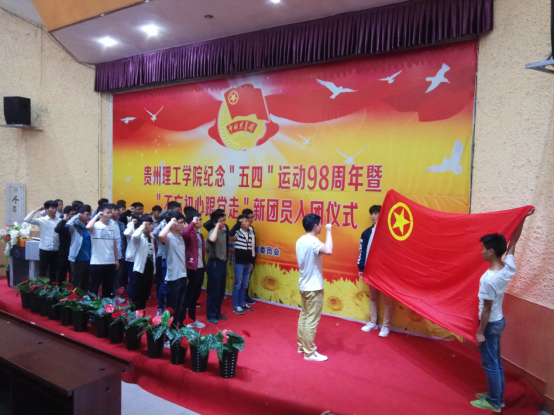 5月5日中午,贵州理工学院纪念“五四”运动98周年暨“不忘初心跟党走”入团仪式校级示范活动在逸夫学术交流中心报告厅举行。