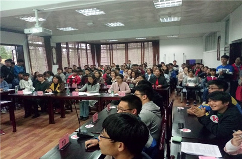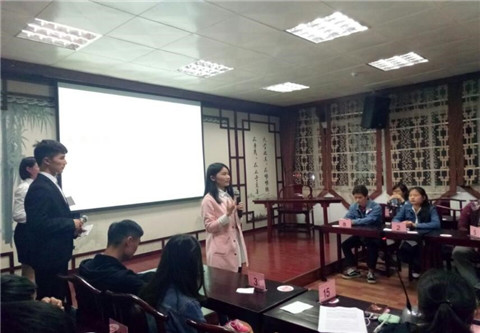 一场竞争与合作并存的赛事在主持人的介绍中拉开序幕。本次决赛采取淘汰制,分为必答题、抢答题、论述题三轮比赛,最终6位选手进入第三轮的终极决赛决出前三名。比赛中,选手们各展风采,力争上游,中场与观众互动,全场一片诗香气息,场面热闹非凡。观众的积极参与,老师的认真评比,更为赛场增添了欣欣向荣的气氛。经过三轮激烈而精彩的比拼,选手王莉以优异成绩脱颖而出,夺得本次决赛的一等奖,刘莹、袁发获二等奖,谭青龙、彭瑶、罗芳玲获三等奖。最后,全体参会者齐声诵读唐代诗人李白的名诗《将进酒》,在朗朗的诵读声中本次活动圆满结束。