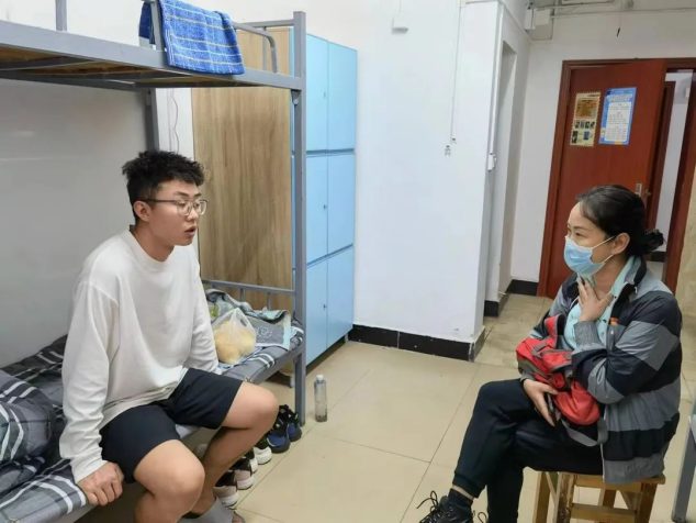 “叮——”,9月14日,清晨6:20,12楼办公室里经济管理学院党总支书记杨雁就起来了,开始做今天的工作准备。“今天上午8:00开始第五轮全员抗原检测,请10栋的志愿者同学通知本栋所有同学,务必提前按照要求做好准备,等待检测,收到请回复!”这是她开始了驻校值守“平凡”的一天——第11天。