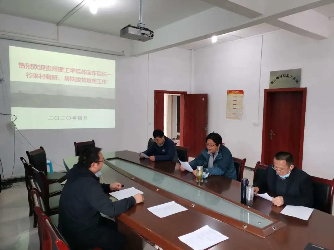 本网讯 4月1日,学校党委副书记、院长苏向东带队赴湄潭县复兴镇观音阁村开展脱贫攻坚工作调研。苏向东一行在观音阁农村社区村民委员会,听取我校资源与环境工程学院副院长、驻村第一书记龙汉生关于驻村工作及帮扶计划的相关汇报,详细了解制约观音阁村长效、稳定脱贫存在的主要问题,以及观音阁村百亩茶叶基地建设的有关计划。苏向东强调,要科学论证茶叶基地建设计划的可持续性,科学有效助力脱贫攻坚工作。