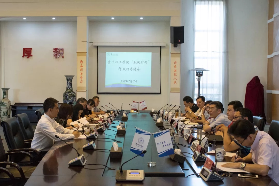 本网讯(组织部 谢海波/文 吴钰洁/图)为进一步贯彻落实省委十二届三次全会精神,积极响应坚决夺取脱贫攻坚战全面胜利的号召,总结凝练先进经验和做法,为积极投入全省脱贫攻坚夏秋攻势做好动员准备,7月18日上午,我校“春风行动”阶段性总结会在喀斯特会议厅举行。校领导曾羽、龙奋杰、梁杰、张波、王建平、宋建波、苏向东、李滚出席总结会,校党委副书记张波主持会议。