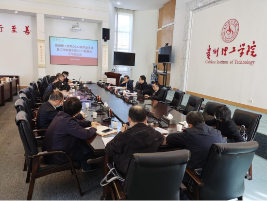 本网讯(招生就业处 赵欢) 11月2日上午,贵州理工学院2022届毕业生推进会暨2023届毕业生就业工作启动会在喀斯特会议厅召开。校党委书记苏向东、校长潘良明、副校长张开智出席会议,会议由招生就业处负责人主持。