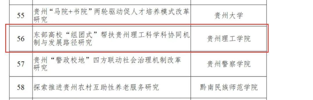 近日,贵州省委改革办公布《2025年度贵州省委全面深化改革重大调研课题名单》,由李少波教授牵头申报的《东部高校“组团式”帮扶贵州理工科学科协同机制与发展路径研究》课题成功入选。