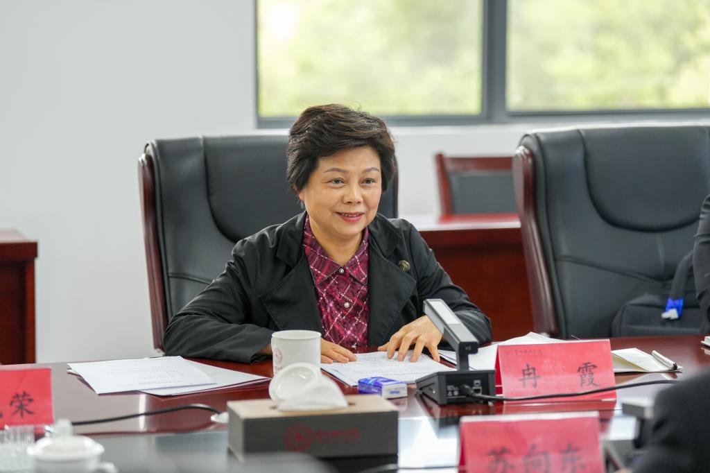 4 月 24 日下午,省政协副主席、民盟贵州省委主委冉霞一行到贵州理工学院开展调研座谈。民盟贵州省委专职副主委黄琳、秘书长陈光荣陪同调研。贵州理工学院党委书记苏向东主持座谈会,民盟贵州理工学院支部成员参加座谈。