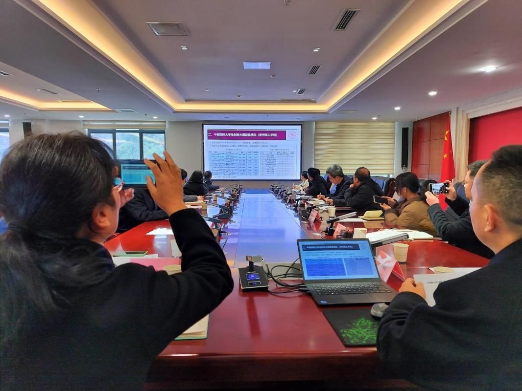 为深入贯彻习近平总书记关于青年科技创新的重要指示,扎实推进中国国际大学生创新大赛(2026)校赛筹备工作,1 月 12 日 14 时 30 分,贵州理工学院在知行楼 605 会议室召开校赛推进会。校党委委员、副校长黄名正出席并讲话,创新创业学院负责人曾诚主持会议,各招生学院相关负责人及国赛专家参会。
