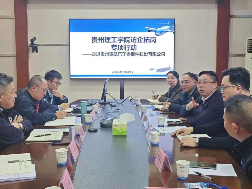 2026年1月28日上午,贵州理工学院副院长李少波率队赴中航工业集团贵航股份有限公司,围绕科技创新与“访企拓岗”开展合作交流。学校科技处、航空航天工程学院相关负责人及骨干教师参加座谈。