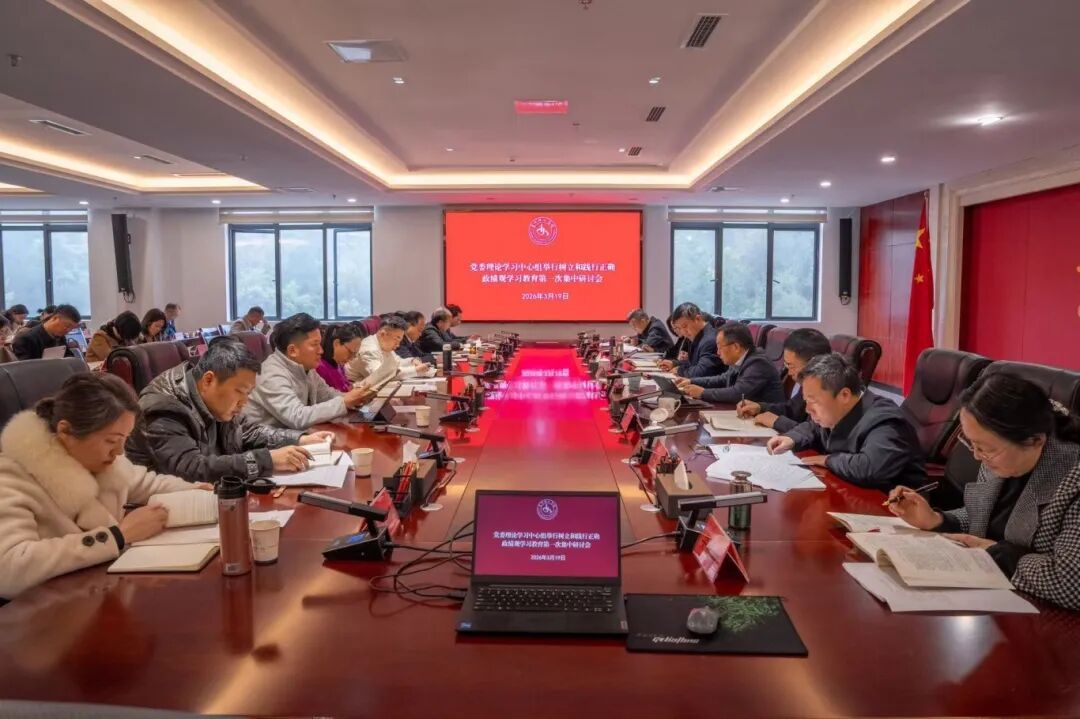 3月19日上午,贵州理工学院党委理论学习中心组在知行楼605会议室举行树立和践行正确政绩观学习教育第一次专题学习。校党委书记张大林主持会议并讲话。