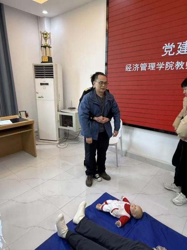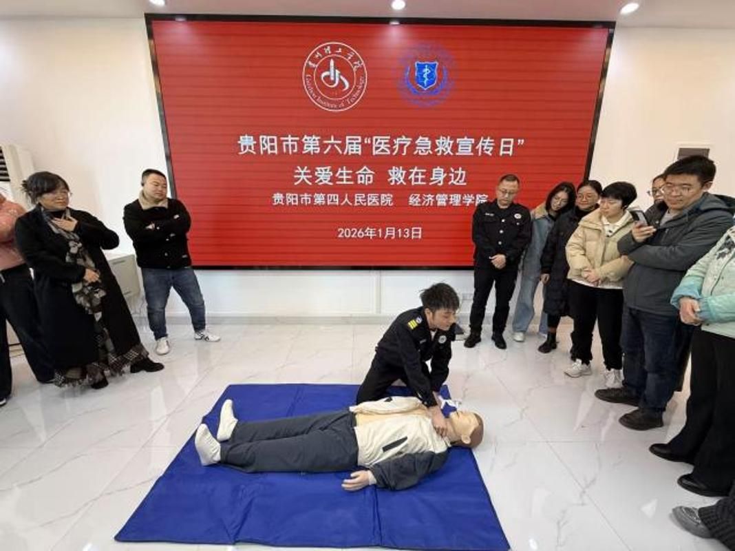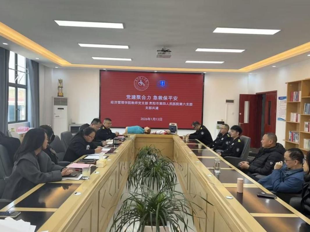 为深化党建共建实效,筑牢校园生命安全防线,1月13日下午,经管学院教师党支部联合贵阳市第四人民医院第六支部在经济管理学院致知楼324会议室开展“党建聚合力 急救保平安”主题党日活动,活动由经济管理学院教师党支部书记孙雯主持,经济管理学院全体教职工、第四人民医院第六支部部分党员代表参加活动。
