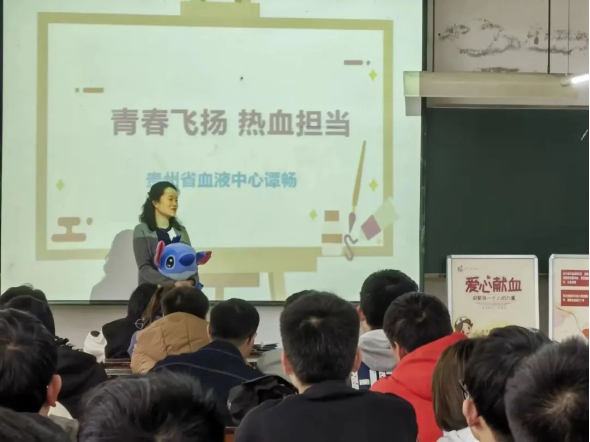 本网讯(贵州理工学院学生会 吉瑶)为加强理工学子的社会责任感和志愿服务奉献意识,了解到更多关于“成分献血”的知识,积极加入到无偿献血的志愿服务队伍中来。2023年4月8日,贵州省血液中心的谭畅老师为同学们带来“青春飞扬,热血担当”主题讲座。