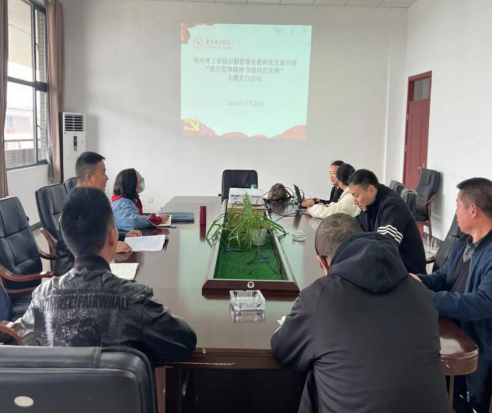 本网讯(后勤管理处 吴莉莉/文 邵茜 易欣/图)3月29日下午,后勤管理处教师党支部在贵安校区开物楼1524会议室开展“践行雷锋精神 争做时代先锋”主题党日活动。会议由教师党支部书记孙凯同志主持,支部全体党员及预备党员参加了此次活动。