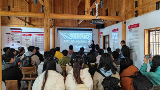 在讲授朵花村乡村文化大礼堂改造时,王荣华为师生整体介绍了朵花村的发展现状和发展特色。刘琳为师生讲解朵花村乡村文化大礼堂的设计理念、细节处理,以及设计过程中其驻场设计师张亮、马麟、肖君羽等与村民互动的生动故事。
