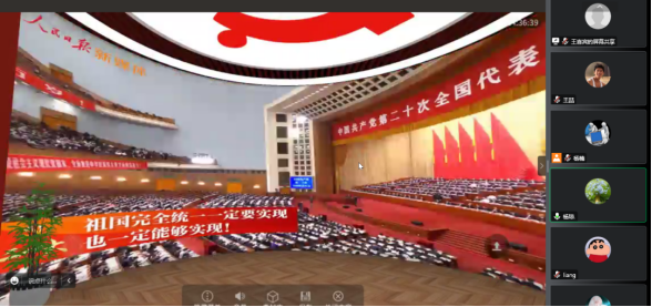 支部党员通过“元宇宙”数字场馆集体观看《二十大代表风采录》。大数据学院教师党支部书记杨楠、建规学院教师党支部书记颜政纲分别运用“元宇宙”场馆资源,围绕“学深悟透党的二十大精神实干笃行谱写发展新篇章”“党的二十大报告与你的生活息息相关”主题上党课,引导教师党员深化对党的二十大精神的认识理解。