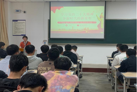 本网讯(交通工程学院 孙鼎容)为深入贯彻学习党的二十大精神,用党的科学理论武装青年,用党的初心使命感召青年,2022年11月23日,交通工程学院团总支书记、学生科科长苏利荣走进交运201、交运202两个班级,以“深入贯彻学习党的二十大精神,争做时代的新青年”为题开展宣讲。