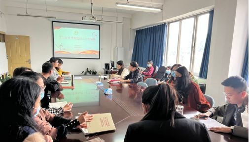 本网讯(外国语学院 罗秋梅)为深入学习贯彻党的二十大精神,2022年11月11日上午,外国语学院在综合楼1102会议室召开党的二十大精神宣讲会。学院党总支书记徐焱以“学习宣传贯彻党的二十大精神”为题开展宣讲,学院全体教职工参加了宣讲会。
