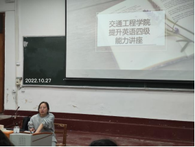 本网讯(交通工程学院沈冬冬)为进一步加强学风建设,有效提升交通工程学院英语四级过级率,充分发挥学生会在为群众办实事解难题中的重要作用,2022年10月27日晚,学生会邀请刘金桂、杨翔宇、尹端已过六级的三名同学为2022级报考四级的新生进行专题指导讲座,2022级100余名同学参加本次活动。
