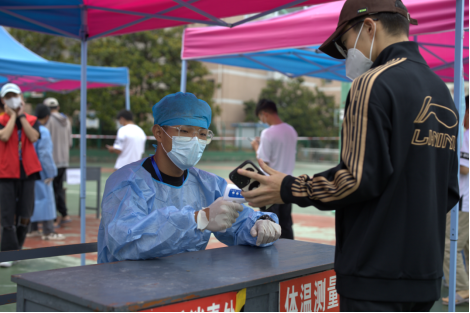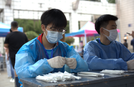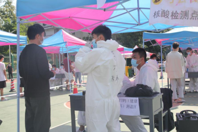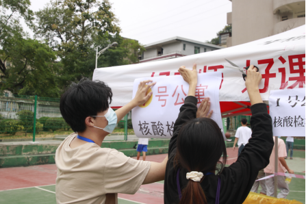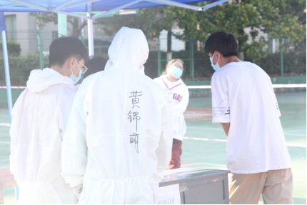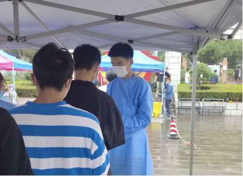 在楼道里、核酸检测点、食堂门口,随处可见的志愿者,“请各位同学打开健康码,保持一米距离排队”,随着提示音的响起,核酸检测开始了,志愿者们指引着同学们有序排队、测温、注册、扫码、登记,与此同时,他们深入每一间寝室,引导同学们有序下楼完成核酸检测;在抗原检测中,他们挨个寝室分发抗原试剂、查看健康码、完成校本化扫码,在最短的时间内完成所有同学的检测;物资搬运、秩序维护、核酸点布置、信息登记、答疑解惑……志愿者们紧密配合、认真负责、有条不紊地开展每一项工作。