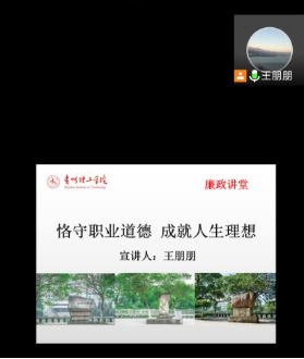 教师党支部书记王朋朋老师以《恪守职业道德,成就人生理想》为题,给全体新生做廉洁自律教育。本次廉政讲座向学生解读了公路水运工程试验检测的工作内容及性质以及相关的试验检测法律法规,选取典型案例从违法违纪行为及处罚等方面进行警示讲解,要求学生在思想、道德、生活以及未来工作方面严格要求自己,知敬畏、存戒惧、守底线,把好人生关口。