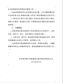 本网讯(建筑与城市规划学院李晓玲)9月1日晚,接到学校有关疫情防控紧急通知后,学院党总支坚决扛起疫情防控主体责任,第一时间响应,第一时间行动,按照学校的工作要求,统筹安排学院疫情防控工作。