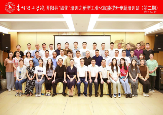 本网讯(继续教育学院 赵艳平)7月1日,由中共开阳县委组织部主办,贵州理工学院继续教育学院承办的开阳县干部“四化”之新型工业化赋能提升专题培训在花溪万宜丽景酒店顺利结业。本次培训有开阳县直部门、各乡(镇、街道)分管领导和科室负责人,国有企业分管领导等抓项目建设和招商引资的骨干共88人,培训分两期进行,其中6月19日—24日为第一期,6月26—7月1日为第二期,两期学员分别完成5天的培训任务并顺利结业。
