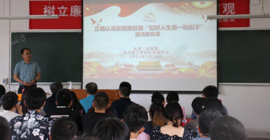 本网讯(人工智能与电气工程学院 刘帆 黄锦萌)为了在青年学生的心中种下廉洁的种子,2022年4月28日,学校纪委副书记叶栋国为人工智能与电气工程学院师生上了一堂题为“正确认清反腐败形势 ‘扣好人生第一粒扣子’”的廉洁教育党课,学院党政领导班子,师生党员、预备党员、发展对象以及入党积极分子近200人参加。