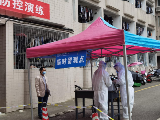 在异常情况处置演练环节,学生处与后勤管理处、保卫处协同配合,就日常健康监测发现体温和“三史”异常学生的应急处置进行了全流程实操演练,全体参训人员全程现场观摩。