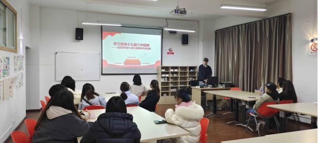 本网讯(外国语学院 李子宸/文 蔡灵 李子宸/图)11月29日,外国语学院团总支在蔡家关校区三教609教室对党的十九届六中全会精神进行集中学习。全体团总支干部参加会议,贵安校区团总支干部以线上形式进行学习。会议由团总支学生(兼职)副书记张子航主持。