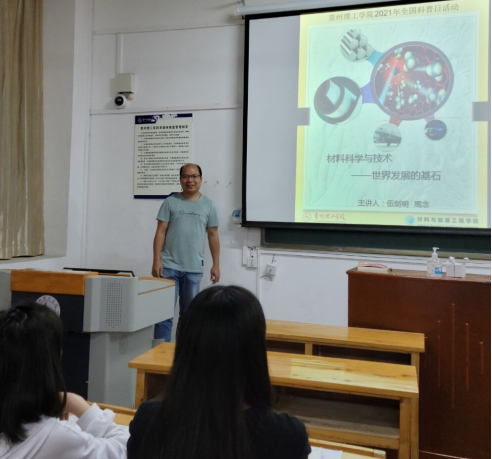 本网讯(材料与能源工程学院伍剑明/文字 周念/图)材料与能源工程学院积极响应“弘扬建党精神担当科创重任 引领自立自强”主题全国科普日活动的倡议,9月29日开展了一场关于“材料科学与技术:世界发展的基石”的科普讲座活动。讲座由伍剑明老师主持,周念老师及学院各年级共70余名学生参加了活动。