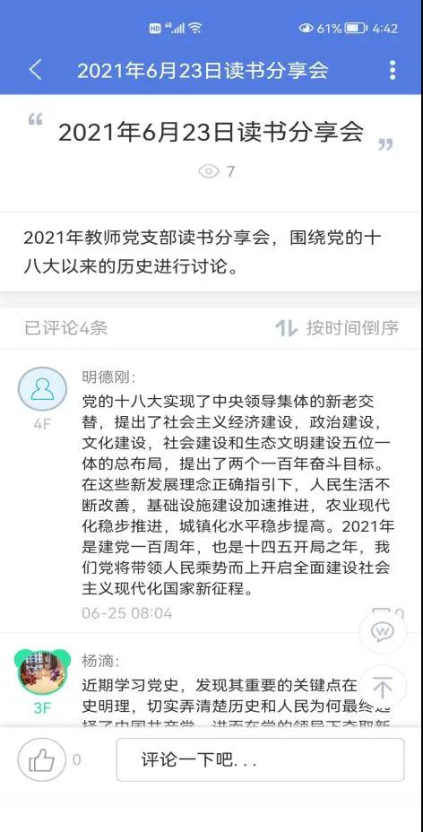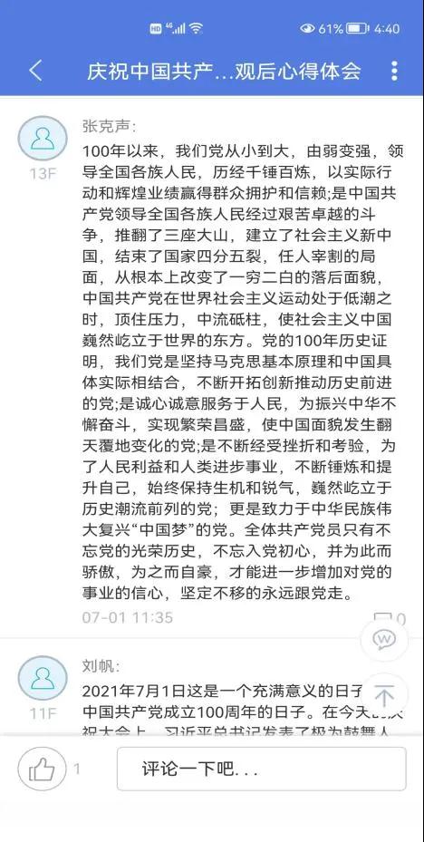 充分利用网络平台, “线上、线下”齐头并进。结合党史学习教育专题,利用易班开展学习互动,撰写学习心得50余篇。