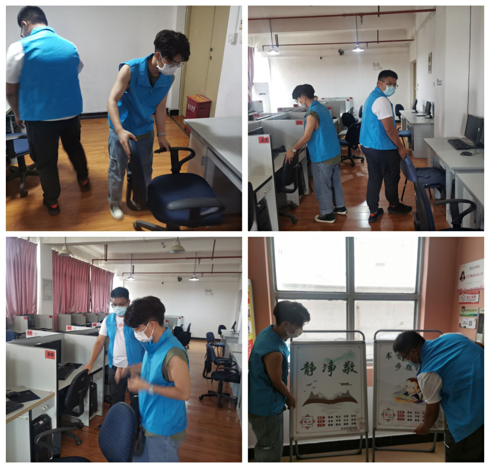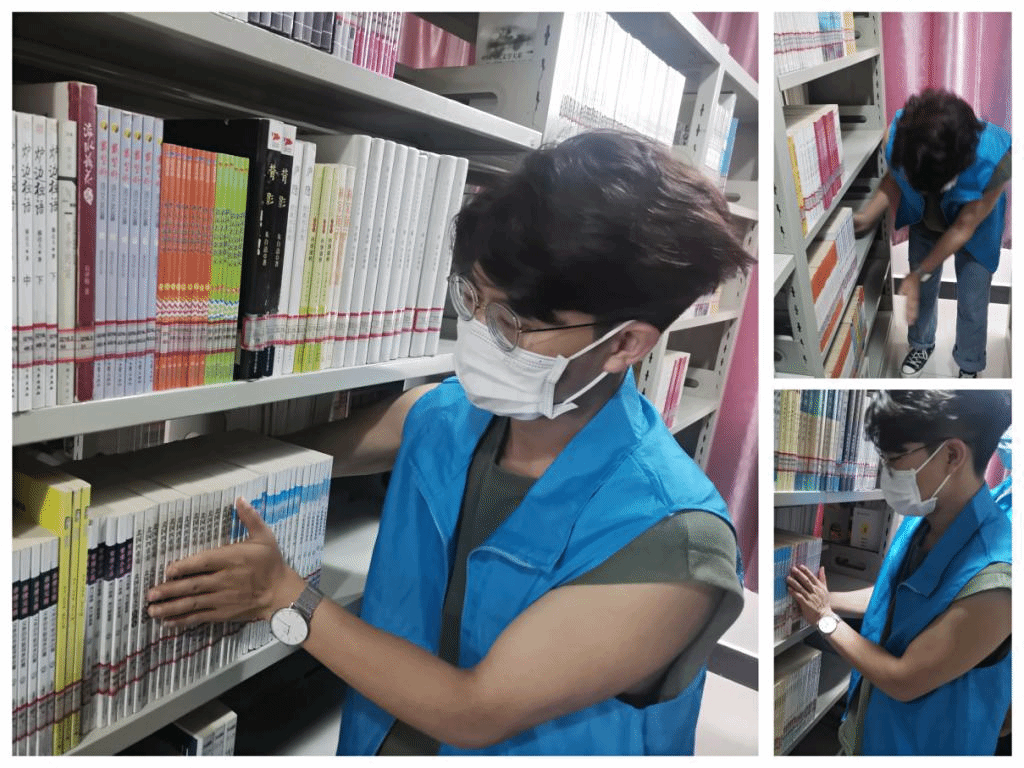乌当区图书馆是政府举办的公益性图书馆,实行零门槛进入制度,所有阅览室均实行免费开放,现有馆舍面积2250余平方米,现藏有22大类图书11.6万册,新定报刊杂志250余种。“同路人”小队在与馆内人员做好对接后开展志愿服务活动,成员们对图书馆数据阅览室、各个自习室进行了打扫整理,清洁桌面、调试设备、摆放桌椅,为市民读者们营造整洁卫生的读书环境。