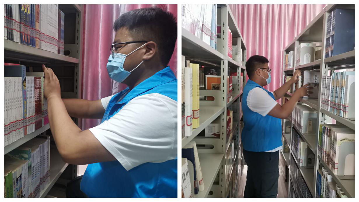 为方便图书管理,方便借阅,延长图书使用寿命,小队成员在馆内工作人员的带领下,帮助乌当区图书馆对书籍分类整理,对于编号缺失或损坏的书籍重新贴上标签,检查书架的稳定性,收拾书架上散落的图书。