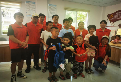志愿者对社区特别困难家庭中的7名留守儿童捐赠爱心书包,让他们感受到社会的关爱,鼓励他们克服生活困难,努力学习,成为社会有用之才。