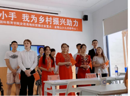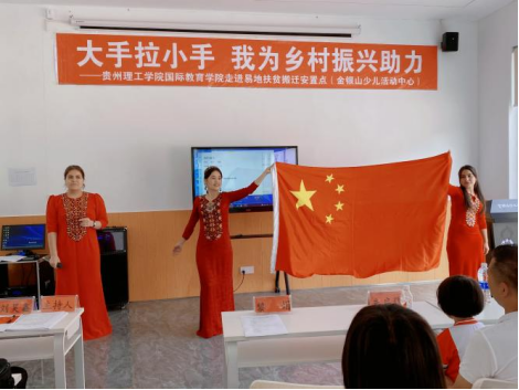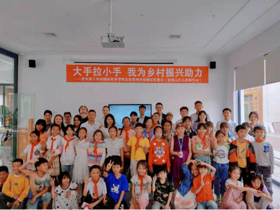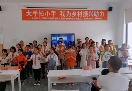本网讯 (国际教育学院 黎娟)为庆祝中国共产党成立一百周年,推动党史学习教育走深走实,国际教育学院师生主动走出去,将党史学习教育与助力乡村振兴相结合,于7月10日走进赫章县易地扶贫搬迁点金银山少儿活动中心,开展了“大手拉小手 我为乡村振兴助力”教育扶贫活动。