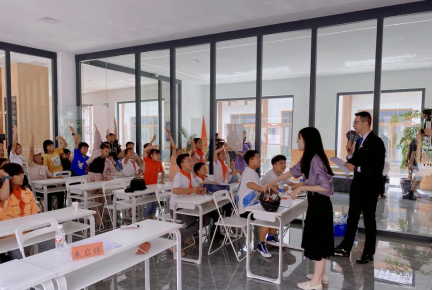 互动交流环节,电自专业(中外合作办学)学生及活动中心的孩子们争先恐后地回答党史知识,反响热烈。