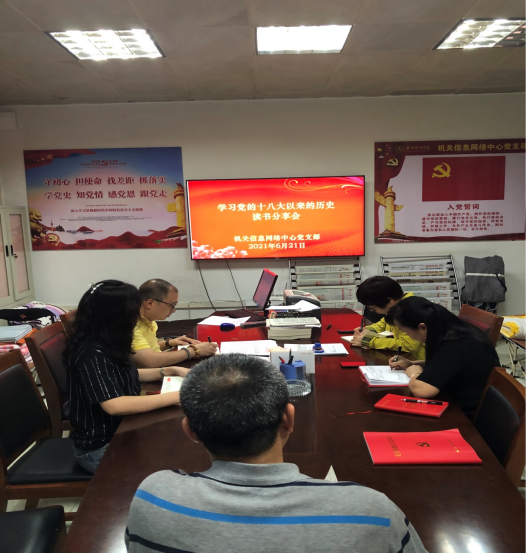 本网讯(信息网络中心 莫紫娟)2021年6月21日,机关信息网络中心党支部在中心一楼会议室组织党员同志开展了“学习党的十八大以来历史专题”读书分享会。