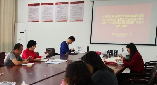 本网讯(建规学院 王喆)6月10日,建筑与城市规划学院教师党支部在贵安校区G3501会议室开展学习贯彻《中国共产党普通高等学校基层组织工作条例》主题党日活动暨党史学习教育“学习改革开放新时期历史”读书分享会。活动由党总支书记唐丽华同志主持,支部全体师生党员参加。
