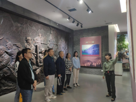 (工训中心党员教职工正听讲解员讲解猴场会议历史)